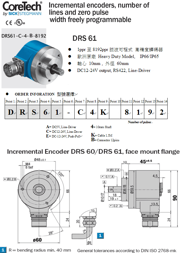 CoreTech_ENCODERS DRS60: Incremental Encoders with Zero-Pulse-Teach DRS61:Incremental encoders, number of lines and zero pulse width freely programmable DRS61 :¤¤¤å²¤¶